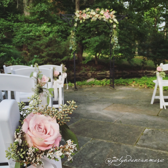 Backroads through Upper Bucks County led me to the little riverside town of Lumberville, PA where Beth and her fiance were scheduled to say their vows on this Sunny September morning. So peaceful, yet so inviting, the ceremony setting couldn't have been more lovely. The newlyweds-to-be had invited Jaclyn Duncan Music to provide a trio- Flute, Violin and Cello- to serenade them down the aisle in this little piece of Pennsylvania paradise.