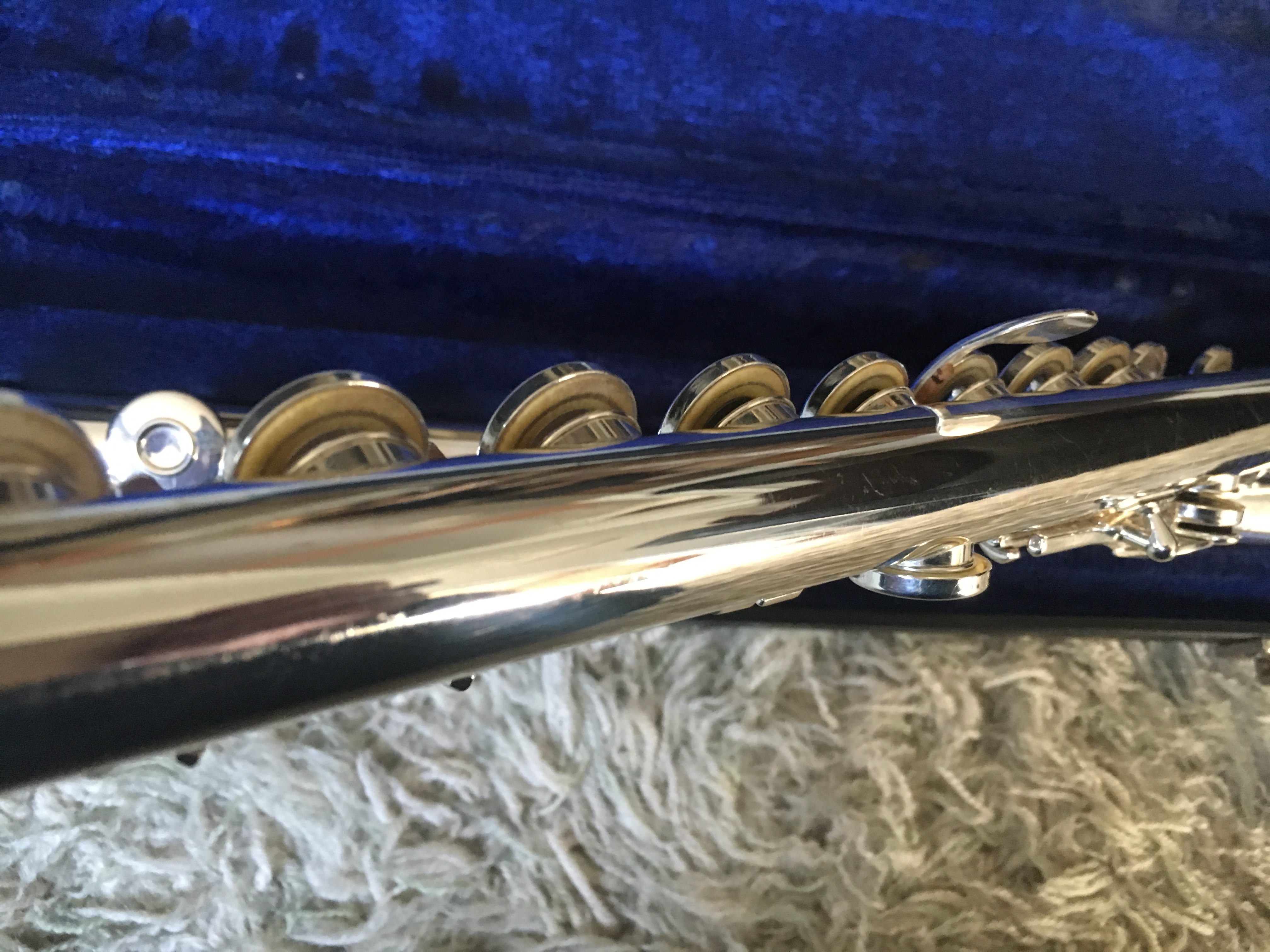 This flute was just serviced and is playing beautifully from high to low. Cosmetically it shows some light scratches and scuffs from standard use but is otherwise in beautiful condition. Comes with a slimline hardshell case, soft outer case and hole plugs. A great flute for the rising intermediate player!