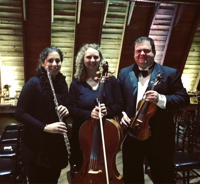 A flutist, violinist and cellist for a wedding ceremony
